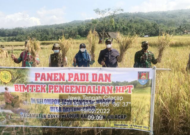 Swadayaonline.com - Berlokasi di areal persawahan Poktan Sangkan Hurip V desa Dayeuhluhur Kecamatan Dayeuhluhur Kabupaten Cilacap, Dinas Pertanian Kab Cilacap bersama Kementan melakukan panen padi. Dengan luas panen 35 Ha diperoleh provitas 6.5 ton/ha GKP dari padi varietas Inpari 13 dan Inpari 42.