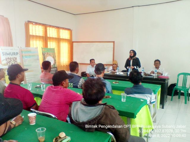 kegiatan bimtek ini sebagai upaya peningkatan kapasitas petani dalam pengendalian OPT terutama hama PBP. Kegiatan Bimtek dilaksanakan Pada hari Rabu (8/6/2022), kegiatan ini dilaksanakan di Balai Penyuluhan Pertanian Kecamatan Pusaka Jaya. bimtek hari kedua dilaksanakan hari Kamis (9/6/2022) Gapoktan Simpar Jaya Desa Simpar, Kec. Cipunagara, Kab. Subang.