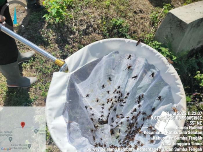 Sementara itu Yuka, Kepala Bidang Tanaman Pangan Dinas Pertanian Sumba Tengah mengatakan, Belalang ini mobilitasnya tinggi, hari ini di titik A tapi besok mungkin sudah di titik B. Makanya survey lapangan kami lakukan berdasarkan update laporan keberadaan belalang dari petugas atau petani dan hari ini kami peroleh info keberadaan belalang ada di 2 kecamatan yaitu Katikutana Selatan dan Mamboru.