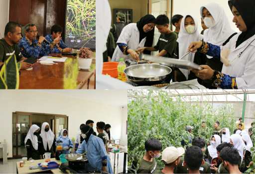 Peserta kemudian beranjak menuju lahan dan laboratorium. Dibagi menjadi tiga kelompok, masing-masing kelompok akan melakukan praktik membuat olahan dan berkeliling lahan IUT.
