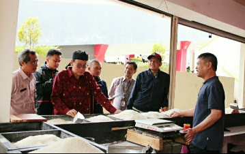 Kepala BPPSDMP, Dedi Nursyamsi, didampingi Kepala Balai Besar Pelatihan Pertanian (BBPP) Lembang, Ajat Jatnika, Pengawas Harga Pangan UPTD Pasar Sehat Soreang, Lukman Nulhakim, Perwakilan Dinas Ketahanan Pangan dan Perikanan, Acep Rohana, dan Enumerator Panel Harga Pangan/Pasokan Harga Pangan, Aris, berkeliling menemui pedagang pasar yang menjual 12 komoditas pangan strategis.