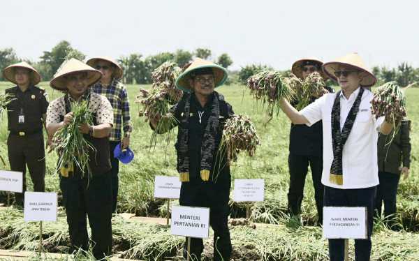 Swadayaonline.com - Menteri Pertanian Syahrul Yasin Limpo (Mentan SYL) bersama Wakil Menteri Perdagangan Jerry Sambuaga bersama Wakil Gubernur Jawa Tengah KH. Taj Yasin Maimoen melakukan panen raya sekaligus pelepasan bawang merah di Kabupaten Brebes sebanyak 25 truk atau 175 ton ke Pasar Induk Kramat Jati, Jakarta. Panen dan pelepasan bawang merah dari jantung produksi bawang merah nasional ini guna memastikan produksi dan ketersediaan bawang merah menjelang Ramadhan hingga Lebaran aman sekaligus upaya menstabilkan harga.
