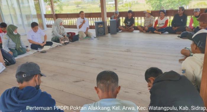 Pada saat kunjungan ke lokasi diadakan pertemuan kelompok/sosialisasi terkait rencana pelaksanaan kegiatan PPDPI yang dihadiri oleh perwakilan dari Ditlin TP, UPTD. BPTPH Sulsel, Kepala IP3OPT Wilayah V Pinrang, Kadis pertanian Kab. Sidrap, Koord POPT Kab. Sidrap, BPP Watangpulu, petugas pendamping PPL/POPT, tokoh masyarakat dari kelurahan Uluale dan Arawa, serta anggota kelompok tani Alakkang. Pada pertemuan sosialisasi dibahas mengenai penelusuran budidaya pertanian di lokasi kegiatan, kondisi iklim di lokasi setempat, dan jenis penanganan kekeringan yang akan diterapkan.