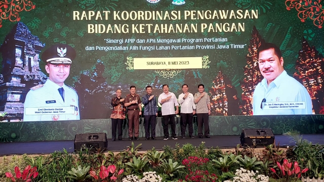 Swadayaonline.com - Inspektur Jenderal Kementerian Pertanian (Irjen Kementan), Jan Samuel Maringka mengajak Aparat Pengawas Internal Pemerintah (APIP) dan Aparat Penegak Hukum (APH) untuk menguatkan kolaborasi pengawalan alih fungsi lahan di Provinsi Jawa Timur.