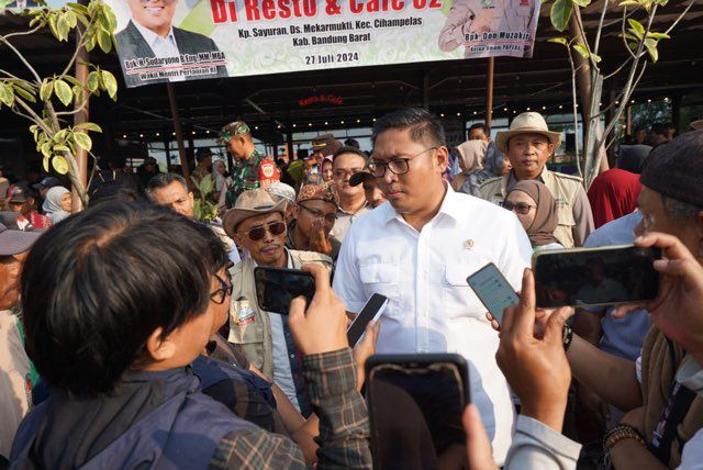 Swadayaonline.com - Wakil Menteri Pertanian (Wamentan), Sudaryono melakukan peninjaun daerah irigasi Leuwikuya sekaligus Temu Wicara bersama DPD Tani Merdeka Indonesia dan DPD Pedagang Pejuang Indonesia Raya (PAPERA), Jawa Barat di Desa Mekarmukti, Cihampelas, Bandung Barat. Kunjungan ini dimaksudkan untuk memastikan langsung pertanian di tengah dampak El Nino (kemarau panjang) mendapatkan pasokan air irigasi, pupuk, benih tepat waktu dan semua kebutuhan petani dari hulu ke hilir sehingga peningkatan produksi dapat digenjot dengan cepat sekaligus kesejahteraan petani.
