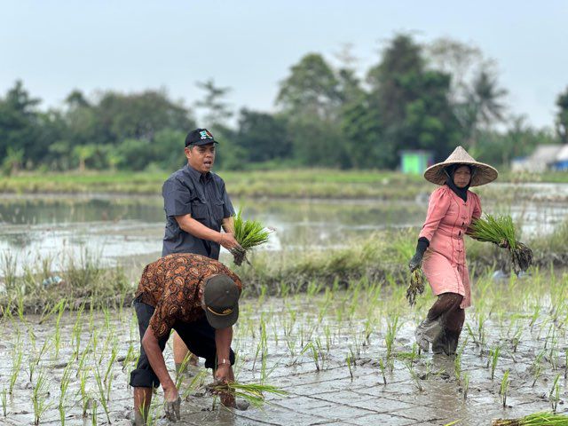 Saat berada dilokasi, Heru berkesempatan untuk turut serta melakukan tanam bersama dan juga berdialog dengan petani.