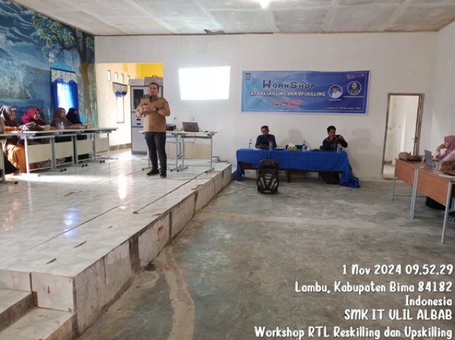 Sebanyak 62 orang guru dan tenaga pendidik SMK IT Ulil Albab Kecamatan Lambu Kabupaten Bima, mengikuti Workshop RTL Upskilling dan Reskilling Program SMK Pusat Keunggulan Skema Reguler tahun 2024. Acara ini berlangsung selama dua hari, 1 - 2 November 2024, di Ruang Aula SMK IT Ulil Albab.